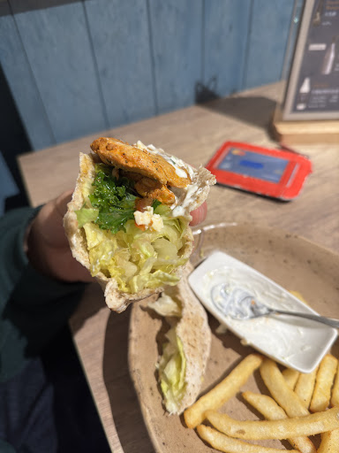now everything else: shred the lettuce!!! nobody wants to bite into a chunk of lettuce in their pita why would you layer all the vegetables at the bottom of the pita and then put the meat only on the very top? do you want only the first bite to have meat? because then the rest is just pita bread and lettuce. amateurs! why did you give such a small amount of meat? its a pita! it should be stuffed no self respecting greek person would serve such a small amount of tzatziki sauce. it was tasty but they give literally half a spoon worth for a full serving of pita sandwich. its literally the only part that tastes good. you will need a lot more the menu is so confusing. you will find the same picture on every page and then find out that you cant order the pita on page 1 because they aren't serving it. you have to order the pita on page 3... wtf. i want a pita just give me the pita idc what page i ordered from. why is the same item on 3 different pages. they say its because it comes with different combo. but then just add a not saying you can choose your combo like a normal restaurant. the chairs are so uncomfortable