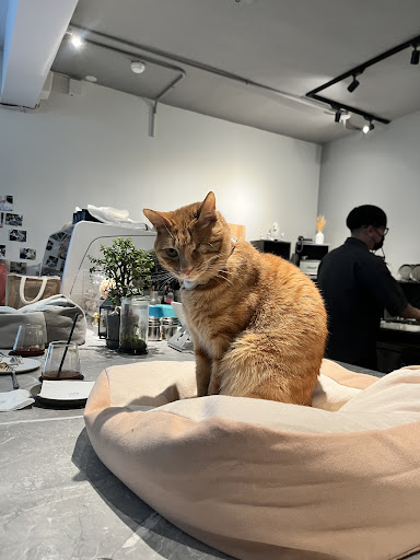 Read moreAbsolutely adorable cafe hidden away in a dead end alley. The cafe has a very minimalistic and modern vibe with cats wandering around. This is not a typical cat cafe where you pay an entrance fee to come play with cats but just a cafe that happened to have cats. That being said, please be mindful when approaching these cats and even just let them approach you first as they are not cats on duty to serve you. When we went ~4 pm, it was time for their snacks so every customer was given a piece of treat to feed the cats.