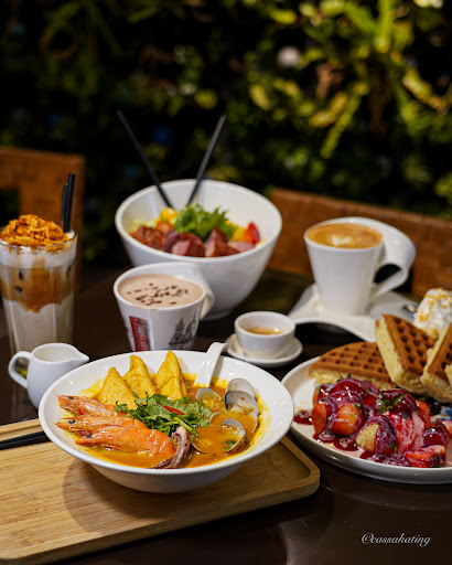 Salt caramel waffle -waffle too thick, dont have any smell of the butter only flour i can smell from. -icream vanillar extract smell is too strong. I prefered the icream made from real vanillar. - wipe cream not rich and feel that it not made from dairy product it non dairy. - almond rancid smell. -caramel not rich. Fruit tea I dnt understand why this menu is the cafe recomened. It too sweet and cant feel the tea. Coffee Smell like instant coffee. Cookie beside the coffee feel like consist of magarine not butter. In my opinion taste is not worth the price.