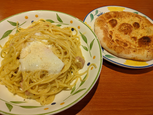 The place was a crowded on a Sunday evening but the staff was able to get us a table after about 10 minutes. You are given a physical menu to browse through but you order by scanning a QR code with your phone and ordering using the online menu. The prices on the physical menu are outdated and you'll see the updated prices online. It would be good if they could update the prices on the physical menu (perhaps with stickers?) so that you won't get confused when you see the online prices. The price difference for most of the items is not that big (ex: pasta, from NTD130 to NTD150) but the drink bar on the physical menu is NTD50 as opposed to NTD75 online. The online menu does not have the option to switch to English so we had to use Google Translate to navigate it at the start and to figure out some of the instructions like "use only one device per table" ordering from the menu itself, it's easy enough because of the pictures. We enjoy dining at family restaurants in Japan, despite them being fairly busy, the atmosphere is still somewhat laidback so we found this particular Saizeriya too noisy when we visited. While the drink bar was a bit of a letdown (compared to family restaurants in Japan), it did offer 2 juices, iced tea, a few soda options, and a decent selection of coffee as well as tea bags. The pasta was delicious and inexpensive. The veggie dish (broccoli with mushrooms) we ordered was also quite nice though some of the mushrooms were not very soft. The fries and chicken popcorn appetizer was kind of meh but then again, it's probably on the menu to appeal to kids. Overall, the food was quite good and fairly priced. Because it was rather noisy, we didn't stay as long as we planned to. We were initially planning on staying a little longer to try the tiramisu but decided to leave and just grabbed dessert from a convenience store. Maybe our experience will be better if we go when it's less crowded though we won't be rushing back...