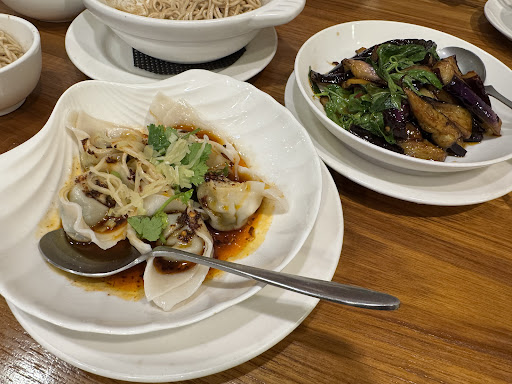 Their menu clearly marks what items contain egg or dairy, making it easier for me as a vegan. We ordered a handful of dishes to share including their Spicy Dumplings, Eggplant, Sesame Noodles, and Basil Mushrooms. Everything we tried was perfectly seasoned, balanced, and we didn't feel heavy at all after eating everything.