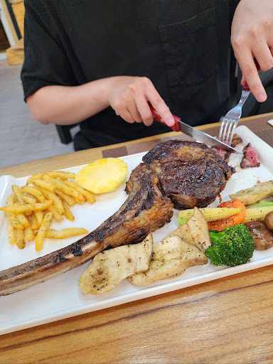 Read more第一次吃到這麼大份量的牛小排, 外層香酥,內層多汁,內層的筋膜也非常有咬勁~~ 聽老闆說要碳火慢烤3個半小時~~ 真的無敵好吃的啦!! 我們一家四口點了兩份牛小排,ㄧ份羊小排,ㄧ份雞腿排, 前菜有蔬果沙拉,南瓜濃湯,阿根廷烤餡餃, 後面還有甜點,咖啡☕️,還可以選擇阿根廷的國寶茶~~ 飽到不行~~
