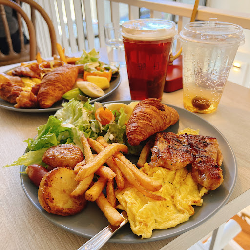 IG:lonely_foodie 📍新竹|映日早午餐🍴 ᴱᴬᵀᴵᴺᴳ ᶠᴼᴼᴰ #墨西哥辣味雞肉古巴三明治拼盤 $240 #紐奥良烤腿排法式炒蛋拼盤 $270 #桂花青梅氣泡水 $120 #胭脂紅玉 $70 (‼️餐點搭配飲品可以折價30元) 補班日大家都要補班嗎❓ 要上班的人辛苦啦🫶🏻 今天過完就能迎接明天假期 好好放鬆一下嘍💪🏻❤️ 陽光從大片的落地窗灑進來🔆 挑高的空間更顯得舒適 美好的早晨🌸就是該來份好吃的早餐🙌🏻 ➜這個法式拼盤非常豐富🥗 很喜歡鬆軟的可頌🍞 還有煎烤過的馬鈴薯塊🥔 綿密的口感很喜歡💕 沙拉水果們當配菜也很適合又好看 但雞腿排的肉質有點柴稍微可惜🥺