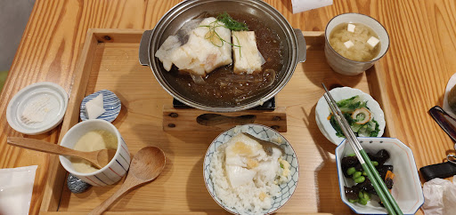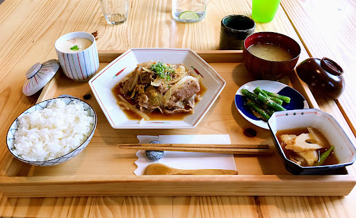 Set-price menus of Japanese & vegetarian dishes lie in store at this casual restaurant.