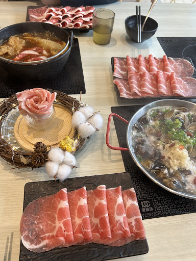 "The meat is fresh and decent, but the sliced beef is average. Even though it's thinly sliced, there are still too many tendons that affect the taste. There is only one flavor of vanilla ice cream and only one option for the main dish - curry rice. In terms of beverages, there is no coffee or milk tea. The The plating is beautiful but portion size of the meat is average. The birthday person of the month received a rose-shaped pork roll as a gift, but it was really too fatty. The environment is bright and clean, but the air conditioning is too cold. They charge a 10% service fee, and the staff helps to clear the dishes, but you have to request for additional soup. There is a public parking across the street, making it convenient for parking. Overall, compared to other similar hot pot places, the CP value is just so so." I give 4 star...