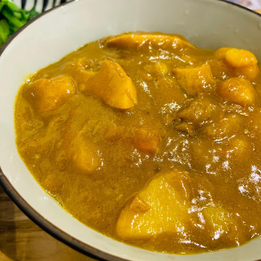 平常沒什麼特別吃蔬食料理的習慣, 今天來到位在竹北光明九路巷弄內的小店「飯桌」用餐。 . 店門口擺著酒精消毒器,有點可惜可能壞掉或是沒電了,沒在運作,希望店家能改善這個問題。 . 店家空間不大,但整體內用座位排列還算寬敞舒適,桌面上有新鮮的花朵迎賓,店貓偶爾會在裡面看著大家用餐,算是滿舒服的環境。 . 店內人手不多,所以會一直看到老闆跟老闆家人?們忙緊忙出的身影。餐點選擇滿多的,點了一份咖喱飯🍛跟藥膳湯,上桌時,嚇了一跳。 . 沒想到份量這麼多😂,咖喱飯滿滿一碗,還附贈海帶與燙青菜🥬,咖喱飯偏辣,不會太甜,很下飯。飯是紫米養生飯,富饒嚼勁。海帶跟燙青菜則是很清爽的味道。 藥膳湯的味道濃郁,應該是當歸湯加上素料的跟蔬菜的味道,也是滿滿的一碗,個人覺得部分素料可換成蒟蒻之類口感較豐富的配料,鴨肉的素料不耐煮,口感較軟。 . 整體而言,環境舒適,價格平價,份量十足,味道也不錯👍!