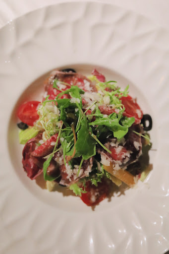 🔸 沙拉 𐂴 // 北義醋醃生牛肉薄片 / 芝麻葉、續隨子 油醋偏酸帶點果香味,怕酸的人可能會吃不太習慣,生牛肉薄片非常鮮甜沒有任何腥味,非常好吃,芝麻葉雖然不多,但是我目前吃過最嫩口的芝麻葉了,其他生菜也不錯吃