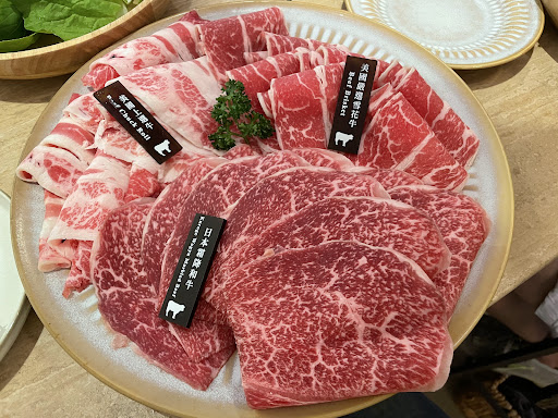 兩個人吃超飽!(我們胃口比一般人大)湯底濃郁,都可以續加原湯!牛奶鍋有附起司。肉品質優秀,三種肉可以吃到不同層次的油花口感,肉片大方,滿足感一百。大蛤蜊很鮮甜,推!菜盤也很優秀,因為不吃火鍋料,沒想到本身菜盤都是蔬菜,唯一的火鍋料是新竹特色「貢丸」,貢丸品質好很香,蔬菜的部分也是都很新鮮,處理乾淨,豐富多樣性。