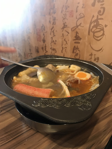 Huge menu of different soup pots to choose from. You can choose your spice level. They do have an English menu as well. The basic pots cost 150-160nt. It is enough for a meal in itself. The pot includes some meat, veggies, glass noodles. Their 'salad bar' is not salad. It is free rice, stewed minced pork, sauces, drinks (black lemon tea when I went, a soda fountain with 4 flavors, 4 flavors of ice cream and different soft serve flavors (1 machine but they change the flavors) and packages of instant noodles you can add to your pot. You have the option of purchasing more meat, seafood, vegetables and noodles as well. The prices are very reasonable. We ordered extra plates (2 beef, 2 chicken, 1 cabbage, 1 mushrooms) our total bill for the extra plates and 2 pots was 640nt. It was too much extra food. I'd suggest only 1 extra meat if you really want it. The vibe is extremely relaxed and zen with soft instrumental Chinese music, low lights, refreshing air con, not overly busy and crowded like other places. Tables for 2 beside tables for 4 but spacious. The tables aren't packed together so you bump chairs with the person at the table behind you. Staff are very welcoming and even came outside after we left to say thank you. Open until 10pm...