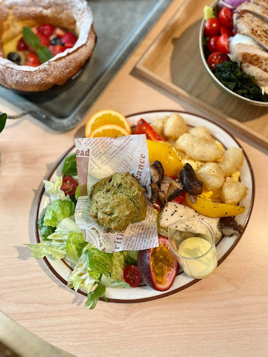 No dedicated vegetarian options, but accommodating staff! While the menu doesn't have specific vegetarian dishes, the staff is willing to modify some meals by substituting meat with extra vegetables, which is a nice compromise. Another great feature of this place is that you can bring your laptop and work with no time limits. They offer a wide selection of coffee and tea, and the desserts are impressively large. The prices are a bit on the higher side, but overall, the experience is enjoyable and...