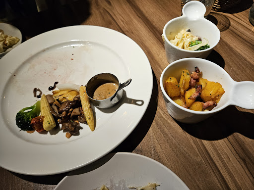 The meat is good but I would expect a little more for the price. The sides are delicious. There is a complimentary appetizer as well. A good wine selection.