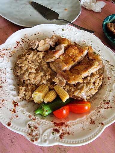 1.牛肝菌菇燉飯 (雞腿排) -已吃過許多店家來說,小木匠算是菌菇味道非常明顯豐富的,味道都扒附在米粒上面,腿排的皮也非常脆,裡面鮮嫩多汁不會柴,是我最喜歡的菜色之一! 2.老奶奶鹹香燉飯 我個人吃這燉飯喜歡加一點辣椒(個人喜好)~ 辣椒能襯托出榨菜的香味,醬汁口味相當下飯,看得到菇類在燉飯裡面,用料算是相當大方 ! 3.巧克力層餅 已經點第三次了!真的超級好吃~ 巧克力濃郁不甜 店家強調用法芙娜巧克力調的餡料 搭配上Oreo非常幸福🥰🥰 整體可以感覺濃濃的巧克力香,但完全不會甜膩,非常香濃,真的好喜歡! 4.香辣辣脆雞早午餐 早午餐的菜色也很豐富!裡面包含了生菜沙拉、炒蛋、薯條、酸奶麵包、主食(香辣脆雞。整個大盤子都被塞得滿滿的,尤其是他們的脆雞搭配的醬我個人覺得很厲害~非常的開胃!悠閒假日能夠吃到小木匠早午餐非常幸福!我喜歡他們的凱薩沙拉,醬的味道雖然重,但是有層次的香味,搭配的蔬菜的清爽與酥脆的麵包丁非常加分! 5奶油肉桂蘋果層餅 這似乎是店家的新口味 菜單上是用手寫補充的 肉桂香氣甜甜香香的,搭上蘋果自然是最完美的😋...