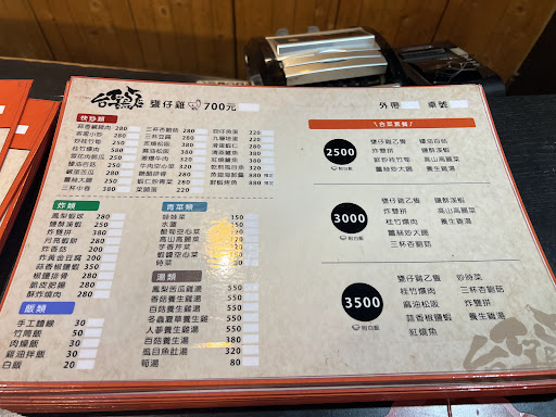 我共點了「薑絲大腸一份」、「辣炒桂竹筍一份」、「甕仔雞乙隻」、「麵線兩份」、「白飯1碗」。