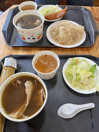 Read more在杉林溪園區內提供餐膳的地方不多,在松瀧岩瀑布附近就只有松瀧岩熟食部了。這裡廚房設備有限,食材也都從山下載上來,因此選擇有限,價格也比較貴。我們點了原住民風味的竹筒飯套餐,這個套餐有分葷素,葷的竹筒飯有放花生蝦米,素食的只有花生,但是味道都不錯,配菜有高麗菜、筍絲、牛蒡,味道還可以,還附了一個熱湯,葷食是魚丸湯,素食是筍片湯,最棒的還是套餐裡有山粉圓甜湯,有甜點總是讓人開心。基本上個人覺得熟食部的餐點比滿意堂好,要在園區內健行還是先...