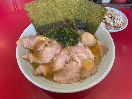 Read moreたま家さん訪問。ご近所さんにこんなに美味しい家系ラーメンが有るとは… 知ってましたし何度も伺ってます。お盆期間でセットメニューありませんので単品で食べたいものを好きなだけ(笑) 食券は先に購入してからの並びになります。 店舗に入ると店主さん奥さん従業員さんの元気の良い「いらっしゃいませ」自然に「こんにちは」と挨拶。 店内はカウンター席10数席、丁寧にカウンターの拭きあげもされて床もぬるぬるしている訳でなく綺麗に清掃されている印象です。 やっぱり左上の法則、ゴリゴリのたま家スペシャル+中盛り。食券を購入時から食欲そそられます。追加でねぎ飯です。 家系増し+玉子+燻チャーの追加よりたまスペは50円お得です(多分)。 食券機にあるように 油多めは有料になります。 今までサービスだった無限ニンニクも有料です。 白米には無限ニンニクがめちゃくちゃ会うのでぜひおすすめです。 一旦店外にて並び、先に並ばれていたお客さんと一緒に案内(多分1.2分ぐらい)11時30分くらいでたまたま空いていた様子です。 最近の暑さの為にたま家さんのご好意で日傘が店先に置いてありました。 食券をカウンターに、今回は普通で。 先にねぎ飯の着丼でしたが、待ちきれずマヨと胡麻と黒コショウの卓上調味料でカスタムしてしましました。ねぎ飯は通常マヨかかってませんので! お待ちかねのたまスペ! クチコミ記載している時でも思い出してヨダレが(´﹃`)お見苦しいところをすみません。 先ずは丼の左上側の燻製チャーから、家系らしいですがキツすぎない燻製度合いで優しいチャーシューです。 続いて右側のチャーシューへ、箸で持ち上げると崩れてしまう激柔チャーで口に入れると溶けちゃうんですよ。もう歯無くて良くね?そんな2種類のチャーシューもスペシャルの特権。 お次は安定の酒井製麺さんの麺。スープをしっかり纏わせて短めの麺で啜りやすく麺とスープの相性がバッチリです。 スープは本牧家に分類されるクラシック系統だと思います。以前お伺いした寿々㐂家さんに近いです。どっちが先なのかはすみません調べてないです。 The家系ラーメンのスープと言うよりは優しさで包まれていてクセが無く角がなくてマイルド。 食券機に飾られている写真では煮玉子はカットされていますが実際はまるまる1個ポンと入ってます。店員さんの手間も有りましょうし、自分的には好きなタイミングで割って濃厚の黄身を堪能出来るのでこっちの方が嬉しいです。 卓上調味料で味変も楽しみつつあっという間に丼と麺、具材無くなってしまいました。