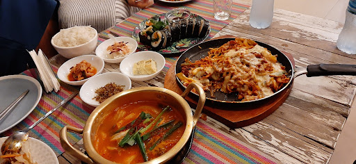 Menu Highlights Korean BBQ: One of the main attractions, where diners can grill their own meat at the table. Bibimbap: A signature Korean dish that includes rice topped with vegetables, beef, a fried egg, and gochujang (chili pepper paste). Kimchi: Traditional fermented vegetables, commonly served as a side dish. Tteokbokki: Spicy rice cakes, a popular Korean street food. Japchae: Stir-fried glass noodles with vegetables and meat. Soups and Stews: A variety of hearty Korean soups and stews like Kimchi Jjigae (Kimchi stew) and Sundubu Jjigae (Soft tofu stew).