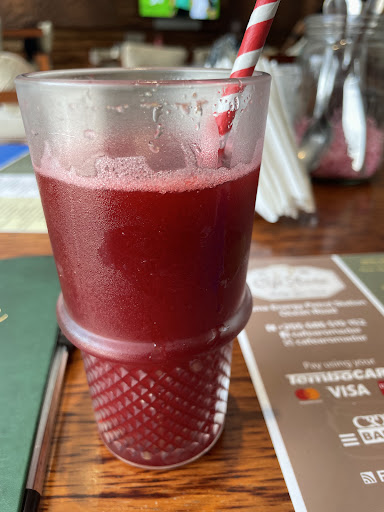 Read moreAt first glance, cafe Aroma may seem like a very average cafe, as it sits right next a petrol station. However, from the outside you can see that it is a nice cafe. It looks inviting. The staff greeted me immediately and I found a seat easily/quickly. I asked if they could mix two juices for me and they obliged without a problem. I ordered a Greek salad with added chicken, and we got some fries for the table. The fries were great! A light crispiness on the outside accompanied by a soft inside. The salad was already seasoned well enough that I didn’t need to add the dressing they provided.
