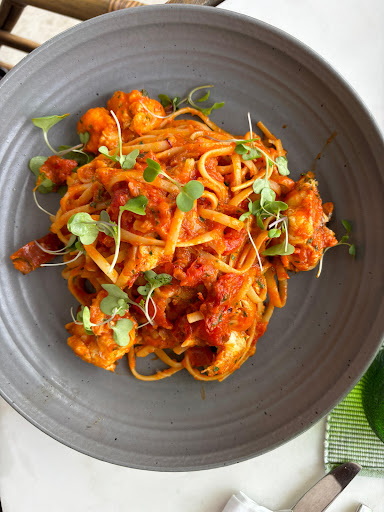 Read moreThe food here is some of the best I've had in Stone Town. We accidentally stumbled upon this hidden gem on a hot afternoon wanting some snacks. Their small plates are perfect for sharing and we were blown away by their Bao buns! We liked the place so much we came again a second time in the same week and tried their larger meals. (This time we ate on their rooftop, which is beautiful!) The lobster linguine and charcoal prawns were fantastic. The prices are a little steep compared to other restaurants in the area, but well justified as you can taste the high quality ingredients in every dish you order.