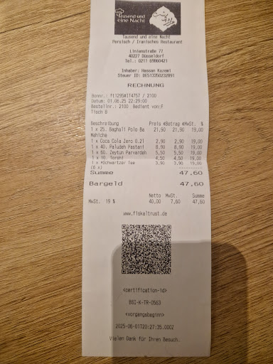 Read moreI was in town for business and I decided to check out a Persian restaurant with the highest ratings on Google. This place was the one so I came by, fairly late actually. I was greeted by the owner and taken to my seat. It was a very nice atmosphere with great selection of Persian music. I placed my order and had my food prepared in about 15-20min which is very normal for a delicate Persian food. Everything tasted amazing. Also had a great conversation with the owner and their experience running a restaurant in Düsseldorf. I will certainly come back again next time I’m in town and hopefully by then they can also add ta’dig to their menu. Please check them out if you’re craving some amazing...