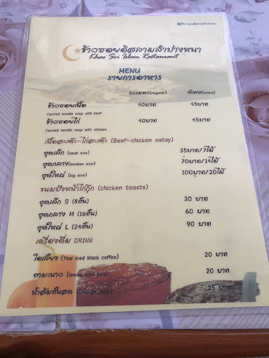 Read moreAlternatively known as Khao Soi Islam this very popular small restaurant has a limited menu of mostly chicken or beef Khao Soi, & satay with peanut butter and ajar. The beef, as with most beef produced in Lampang and seemingly Thailand, is stringy and low quality but the chicken is good. Pork isn’t...