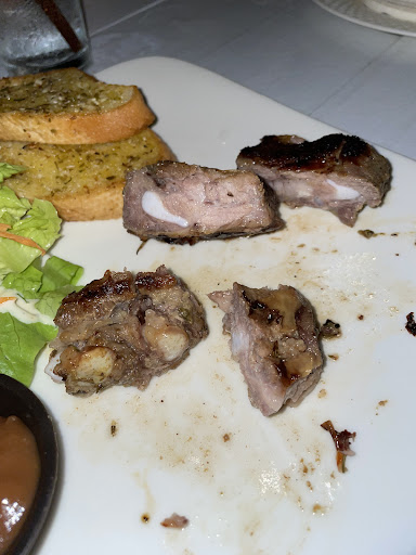 สเต็กทีโบน 390฿ (2/10) สั่งมีเดียมแรร์ ได้ทีโบนชิ้นเล็กๆ อบไมโครเวฟ ความสุกเกินคำว่าเวลดัน ไม่ได้ย่าง แข็ง กินไม่ได้ ต้องส่งคืนให้ทำใหม่ ได้ทีโบนเล็กๆ อบไมโครเวฟเหมือนเดิม ความสุกมีเดียมเวลดัน แนะนำจะมากินสเต็กร้านนี้ให้เลี้ยวเข้าแม็คโครซื้อเนื้อสเต็กเกรดต่ำที่สุดเอามานาบกระทะเชฟล่อนกากๆ 2-3 นาทีน่าจะอร่อยกว่า