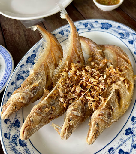 เมนูที่ 3 ทอดมันปลากราย อีกเมนูที่ทำเราประหลาดใจ ทางร้านทอดมาได้ดีมาก ไม่อมน้ำมัน และถ้าคุณเห็นตามรูป ใช่ครับมาเป็นชิ้นหนาๆใหญ่ๆแบบนั้นเลย เนื้อเด้งเนียน ใช้ช้อนตักก็เด้งสู้ช้อน เข้าปากก็เด้งสู้ฟัน ฟีลเหนียวนุ่มเด้งแบบปลากรายแท้ๆที่หาได้ยาก ส่วนรสชาติเผ็ดเค็มหวานแบบละมุนกลิ่นเครื่องแกงค่อนข้างชัด เป็นทอดมันปลากรายในอุดมคติของใครหลายหลายคน