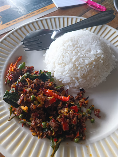 Read moreอยุธยา...เมืองเก่าของเราแต่ก่อน...😅😅😅 อารมไหนค่ะเนี่ย เปิดมาก็ร้องไห้ เห้ย!!ร้องเพลง😁 ตื่นมาก็หิวเลยอะ จะกินไรดีนึกไม่ออก เปิดยูทูป เจอร้านนี้เข้า อยากลองของจ้า อ่ะรอไร แต่งตัวไปเลยสิคะ😜 ออกจากบ้านกดแมพตามชื่อร้านเลย ไปถึงร้านก็อย่าได้รอ สั่งซิคเนเจอร์ ไปเลยซิคะ ผัดเผ็ดนรกแตก กะเพราเนื้อหน่อไม้ และต้มแซ่บเนื้อเปื่อย ต้มแซ่บเผ็ดร้อน แก้เผ็ดด้วยเนื้อแดดทอด แอดอยากจะบอกว่าผัดเผ็ดนรกทำแอดท้องไส้ปั่นป่วนมาก😜✌️ เผ็ดพริกไม่พอ เผ็ดเม็ดพริกไทยอีก ปากพองจะแม่จ๋า แต่อยากจะบอกว่า กะเพราเนื้อหน่อไม้อร่อยนะพวกเธอ แอบนัวๆเหมือนกันนะ😜✌️...