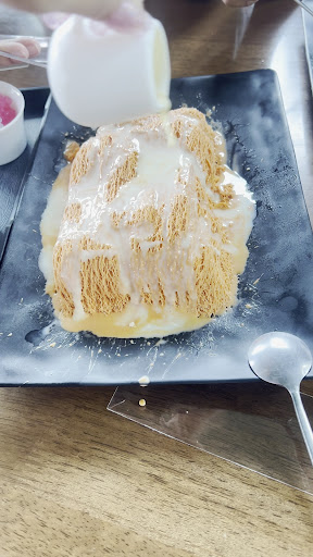 Read moreร้านน่ารักมากค่ะ มีโซนให้ถ่ายรูปเก๋เก๋ อาหารเครื่องดื่มอร่อยรอไม่นานเลย เราอยากไปนั่งอีกโซนหนึ่งที่เค้าไม่เปิดแอร์เค้าก็ให้เราไปนั่งพร้อมกับเปิดแอร์ให้ด้วย ทีแรกก็เกรงใจว่าเราไปนั่งโต๊ะเดียวกันกลัวเค้าจะไม่เปิดแอร์ เราก็โอเคอยู่ แต่น้องน้อง พนักงานน่ารักมากเดินไปเปิดแอร์ให้เลย ที่จอดรถมีจำกัดนิด ไม่แน่ใจว่าถ้าไปวันเวลาปกติคนจะเยอะไหมแต่เราไปช่วงบ่ายและเย็นคนก็น้อย เมนูบิงซูซูที่เราสั่ง อร่อยแต่มันจะมีช้อปปิ้งที่เป็นถั่วแดงทางร้านทำไม่น่ากินเลย น่าจะใช้ช้อนตักให้มันเห็นเป็นถั่วแดงหน่อยมันปั่นมาเป็นก้อนเลยไม่น่ากินเลยค่ะ...