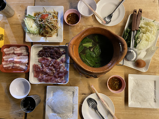 มากินเป็นประจำครับ จิ้มจุ่ม น้ำซุปและน้ำจิ้มรสชาติเด็ด เนื้อหมูต่างๆ อร่อย สด ไม่เหนียว อาหารตามสั่งได้ลองไม่กี่อย่าง อร่อย ปริมาณพอดีๆ ส่วนโจ๊ก/มาม่าหม้อดิน ต้มยำ รสชาติดี ราคาจะแล้วแต่เครื่องที่เราเลือก สะดวกที่เขียนในใบเลือกเองได้ตามใจชอบ พนักงานพอเพียง บริการดี คุณภาพคุ้มค่าราคา มีที่จอดรถพอเพียง หรือจอดข้างทางได้หลังช่วง 21:00 ข้อเสียเดียวตือติดริมถนนใหญ่ และเป็นทางที่ลงมาจากสะพาน ต้องทนเสียงรถหน่อย ทั้งมอเตอร์ไซค์สายแว้น...