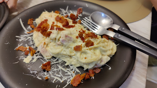 T Space, tucked away on the quieter Sukhumvit Soi 93, is a hidden gem that offers a refreshing escape from the bustling main road. I visited for lunch, and the experience was a pleasant surprise, blending modern vibes with approachable Italian & Thai fusion cuisine. The restaurantâs exterior is unassuming, but stepping inside reveals a sleek, contemporary space with warm lighting and minimalist decor. Think wooden accents, cozy seating, and a touch of industrial charmâperfect for a casual date night or a catch-up with friends. The outdoor seating area is a nice touch, especially for Bangkokâs cooler evenings. Pizza, salad, burger & coffee are well...