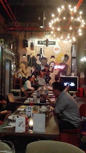 Add the weirdly trained staff and music that's too loud to talk, and you've got the "7th Street" Experience. Also note that when we came in we couldn't sit away from the stage as there had been "an accident" in that area, to which the floor manager wouldn't...