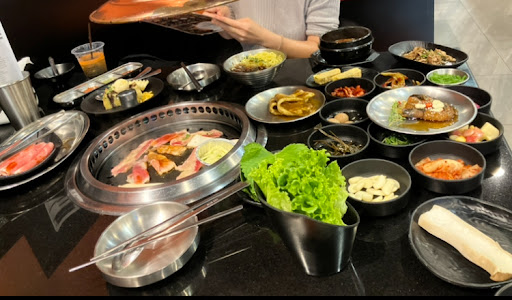 จุดเด่นของบุฟเฟ่ต์ที่ร้านจะมีเครื่องเคียงให้เติมไม่อั้นมีหลายอย่างเลย ส่วนใหญ่จะเป็นพวกของดองเปรี้ยวๆ เอาไว้ตัดเลี่ยนได้ดี เมนูอาหารค่อนข้างหลากหลาย มีทั้งเนื้อส่วนต่างๆ ซีฟู้ด ของทานเล่น อาหารเกาหลี และ ปิดท้ายด้วยของหวาน อีกทั้งยัง มีอุปกรณ์เอาไว้ตัดเนื้อให้ครบสะดวกสำหรับการทาน