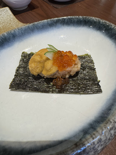 Raw materials were fresh and good taste. Foie gras was not good, some smelly, too cold, not crusted, overall not delicious and not valuable. Rice was not good taste, not like sushi sour rice. Complimentary soup was good, yuzu smell was nice.