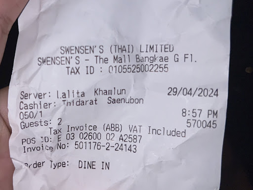 ขออภัยที่ไม่ได้ถ่ายภาพไอศครีมมาด้วย เพราะตอนนั้นกำลังโมโห บวกกับมัวแต่บ่นกันอยู่กับผู้ที่มาด้วย และอยากจะรีบกินรีบกลับ เลยถ่ายมาเพียงแค่ใบเสร็จรับเงิน (ตอนแรกทางแคชเชียร์ไม่ยื่นใบเสร็จมาพร้อมเงินทอน ...