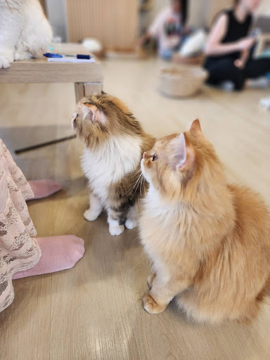 โดยรวมแล้ว ร้านคาเฟ่แมวนี้เป็นสถานที่ที่เหมาะสำหรับการพักผ่อนและใช้เวลาคุณภาพกับเพื่อนขนปุย หากคุณเป็นคนรักแมวและกำลังมองหาสถานที่ที่ให้ความรู้สึกอบอุ่นและเป็นกันเอง พร้อมกับอาหารและเครื่องดื่มคุณภาพ...