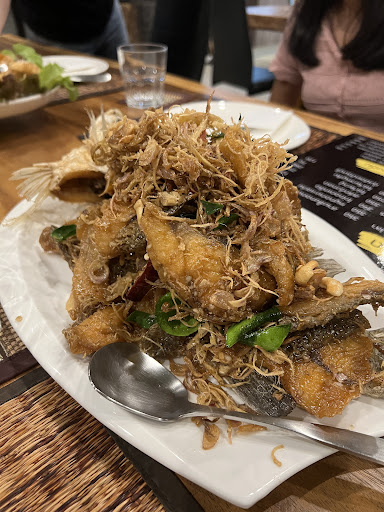 อาหารที่เราสั่งมาเยอะมากกก สเต็กเนื้อซอสแจ่ว - เนื้อย่างมาดี นุ่มไม่เหนียว เนะนำว่าให้สั่งไม่สุกมาก ซอสแจ่วอร่อย สเต็กหมูซอสแจ่ว - หมูนุ่มไม่เหนียว แจ่วอร่อย ปลากะพงทอดสมุนไพร - ปลาตัวใหญ่มาก แกะเนื้อมาแล้ว เครื่องสมุนไพรแน่นๆ ซอสเข้มข้น ดีมากกก สลัดกุ้งทอด - กุ้งทอดแบบแป้งบางๆ ไม่หนาแบบที่อื่น แกงส้มชะอมกุ้ง - น้ำแกงเข้มข้นมาก ทานกับข้าวคือดีเลย ต้มยำกระดูกอ่อนน้ำข้น - แซ่บบบบบบ กุ้งฝอยปทุมบุรี - ดีมาก บีบมะนาวนิดหน่อย จะคลุกข้าวหรือกินเล่นก็อร่อย กรอบๆ เค็มๆ ไก่ผัดเม็ดมะม่วง - เนื้อไก่นุ่มไม่เหนียวเลย ซอสเข้มข้นดีมาก หมูสามชั้นทอดพริกเกลือ - หมูไม่เหนียว กรอบๆ นุ่มๆ อร่อย หมูสามชั้นทอดน้ำปลา - เค็มๆ อร่อยดี กินเป็นกับแกล้มหรือกับข้าวก็ดี มัสมั่นเนื้อโรตี - อันนี้ไม่ได้ถ่ายรูปมา แต่อร่อยมาก แนะนำเลย เป็นมัสมั่นที่ไม่เคยกินที่ไหนมาก่อน เนื้อนุ่มละลายในปาก กับแป้งโรตีกรอบๆ ดีมากกก ข้าวผัดปู - ปูก้อนใหญ่มากกกก ไม่ใช่เศษปูแน่นอน โคตรดี
