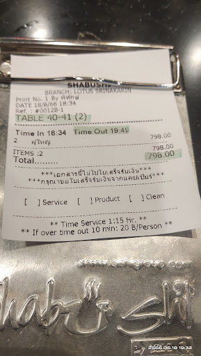 buffet shabushi พรีเมี่ยม ในราคา 534 บาท/คนnet ไม่มีอะไรดีเลย เข้ามากินโดยที่ในร้านคนน้อยมาก ช่วงเวลา 18.00น. แสกน QR code สั่งอาหาร ของจะมาช้ามากกว่ายกมือเรียกพนักงานแล้วบอกเมนูที่ต้องการ ไม่แน่ใจว่าไม่มีคนดูออเดอร์หรือยังไง สั่งซูชิไปตั้งแต่ 18.00. 4 ชิ้น มาเสริฟตอน 19.15น. ปั้นซูชิเป็นชม.เลยหราา แถมช่วงนี้มีโปรบุฟเฟต์ปูอีก ปูเค็มจนโรคไตถามหา สั่ง 3 ตัว พักก่อน จะตุยเอา พนักงานตั้งหน้าตั้งตาเก็บร้านตั้งแต่ 18.00น. แต่ไม่เก็บจานบนโต๊ะที่วางเกะกะ เลอะเทอะ ตามของไปหลายครั้งไม่มาเลยสั่งใหม่ มาอีกทีจานใหญ่มาก กุจะบร้าา...