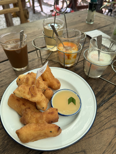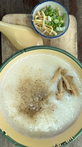 ความเห็นส่วนตัว บรรยากาศร้านต้นไม้เยอะดี แต่โต๊ะไม่เยอะ ต้องหาที่นั่งเอง สั่งอาหารต้องชำระเงินก่อน ที่จอดรถมีจำกัด อาหารรสชาติโอเคแต่ตอนที่เติมข้าวไม่ผ่านอย่างแรง สั่งข้าวต้มกับโจ๊กเป็นเซ็ตก็จะมีปาท่องโก๋ขนมปังปิ้งเนยนมแล้วก็เครื่องดื่มเย็น เมนูข้าวทางร้านเขียนไว้ว่าเติมไม่อั้นเลยลองเติมดูเพราะอยากรู้ว่าได้ยังไงบ้าง ถึงรู้ว่าเฉพาะข้าวเนื้อสัตว์ไม่เกี่ยว อันนี้เข้าใจได้😅** โจ๊กชามที่เติมข้าวแข็งเหมือนไม่สุก และไม่ร้อนด้วย แล้วรสชาติก็ไม่เหมือนเดิม สรุปไม่ผ่าน