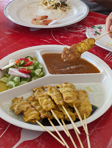 Read moreผัดไทอร่อยมาก มีให้เลือกใส่กุ้งสด กุ้งแห้ง หมู เส็กเล็กเหนียวนุ่ม กุ๋ยช่ายอ่อน ถัวงอกสวย ถั่วลิงสงดี ผัดมาไม่แห้งไป นัว กลมกล่อม มีเมนูแกงเขียวหวานไก่ ขนมจีน ใช่ไก่เนื้อน่อง หรือสะโพก อีกเมนูเตี๋ยวคั่ว คนสั่งบ่อยเหมือนกัน แต่ส่วนตัวเฉยๆ หมูสะเต๊ะอาจธรรมดา แต่ผมชอบน้ำจิ้ม เป็นรสชาติที่คุ้นเคย ไม่ต้องพิศดารมาก เด่นสุดร้านนี้ให้ผัดไท แต่ราคาถือว่าแพงกว่าทั่วไป เมื่อเทียบกับปริมาณที่ได้ (แต่รับได้) การบริการแค่พอใช้ เพราะร้านมีคนน้อย เลยจะยุ่งตอนเที่ยง เจ้าของร้านไม่ค่อยยิ้มแย้มเท่าไหร่ เครื่องดื่มที่ร้านทำ ไม่โอเค เก๊กฮวย กระเจี๊ยบ ชาดำ โอเลี้ยง จืด ชืด...