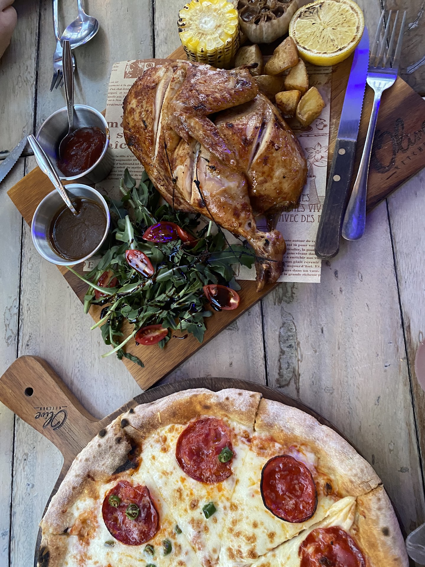 Read moreA very friendly resturant, with a fascinating outlook on to the market and astonishingly, a repurposed aeroplane! It has a great vibe and atmosphere. When we went there was live music, so that really made it special. The food was delicious, a mix of Asian & European cuisine. The freshly made Fettuccine with Salmon was a triumph. We also enjoyed the Flaming Pizza and Salmon sushi amongst other dishes which are all made to be shared. There is an enormous choice of drinks, with more options of beer and craft beer than I have seen anywhere else. I would recommend this place to anyone, I...