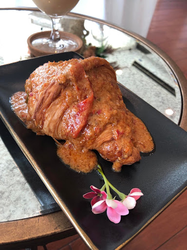 อื้ม อร่อยจริงอย่างว่า ซอสเข้มข้นมาก หอมเครื่องแกง แต่จะมีความหยาบของซอส ไม่ได้ละเอียดมาก ทำให้เวลากินได้เนื้อสัมผัสของเครื่องแกงต่างๆได้ดี จริงๆควรมีโปรตีนเสียหน่อย เช่น เนื้อปูนึ่งโรยท็อปปิ้ง แล้วอัพราคาเพิ่ม จะดูพรีเมียมไปอีก