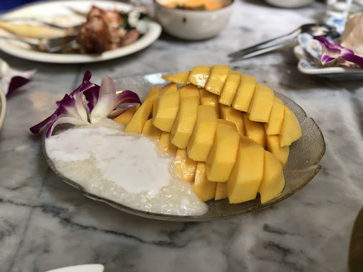 We were the only vegetarians in our group and our tour manager had told them our vegetarian dietary restrictions (including no MSG, no eggs or fish sauce , seafood or any meat). It was a multi-course meal so we started with Salad, Appetizer, Soup, Main course and dessert. For salad we got papaya salad, for app it was spring rolls, Tom Kha vegetarian soup, and a Thai curry. For dessert we had mango sticky rice All the food was very, very good albeit spring rolls were slightly oily. The most unique item was the curry which had puffed tofu in it. The puffed tofu was so light that it absorbed the curry sauce and made it really really tasty and was not heavy at all. In 3 weeks in Thailand this was the only place that we came across Thai puffed tofu in our curry . It was amazingly sumptuous and we really really loved that. Kudos to them for making everything vegetarian/vegan. Food portions were huge and actually after the salad came we told them for ma d my wife they need not bring 2 separate items - they can bring only one and we will share as we did not want to waste food. They still brought 2 of each and we basically ate from one and shared the other with our tour members sitting on our table. When I told our tour manager that we asked for 1 but they still brought 2 , he relayed to us that some Thai people get offended if you refuse food because they have made it with so much love. I guess I should have known better and learnt more about some of the food customer