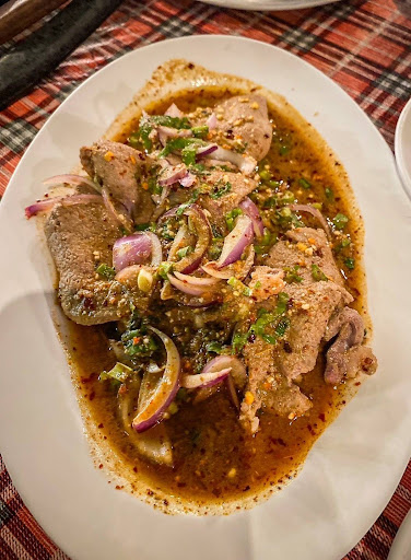 หมูสามชั้นทอด ราคา 90 บาท (12 พย 2566) มาพร้อมกับน้ำจิ้มแจ่ว เสื้อร้องไห้ ราคา 80 บาท เนื้อติดมันหมักมาออกรสหวาน ไม่เหนียว ผัดหมี่โคราช ราคา 80 บาท เบียร์สิงห์ โปรสั่งสามขวด ราคา 249 บาท จากราคาปกติ 270 บาท...