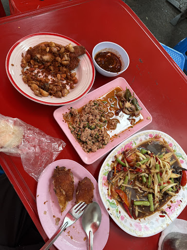 The best of all is their fried chicken(ไก่ทอด) is crisp! I saw people having the whole fried fish(ปลาทอด) which looks yum too! Have it with sticky rice is all you need if you’re not a fan of the Somtum. Pork mince salad is also nice but nothing too special.