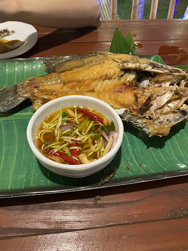 อาหารรสชาติกลางๆ ทานได้ไม่หวือหวา ร้านขาดอาหารซิคเนเจอร์ ยำวุ้นเส้นทะเล หวานเกินไป น่าจะใช้ไซรัป รสชาติเลยหวานเหมือนน้ำเชื่อม แต่มีรสเปรี้ยวและเค็มเผ็ดอยุ่ ของทะเลสดพอประมาณ 6/10 ปีกไก่ทอด ใช้ได้ค่ะ 8/10 ลาบหมู ทำแบบลาบแห้ง รสชาติกลางๆ 7/10 ซุ้มนั่งไม้ไผ่ นั่งสบายแต่ถ้าคนตัวเล็กจะนั่งไม่สบายเพราะโต๊ะสุง การจัดโต๊ะโดยรวมโอเค เหมาะกับมาเปนครอบครัวหรือสังสรรค์เลี้ยงรับรอง 8/10 ราคาอาหารค่อนข้างสุงเมื่อเทียบกับปริมาณและบรรยากาศร้าน รายการมีหลากหลายแต่มีให้เลือกไม่หลากหลาย เครื่องดื่มราคาค่อนไปทางสุง 7/10 ที่จอดรถมีมากพอ แต่ทางเข้าแปลกๆไม่มีพนักงานดูแลด้านหน้าซึ่งดูมืดๆ มีรั้วกั้นเหมือนบังทางสวยของร้าน 8/10 พนักงานต้อนรับเอาใจใส่ดี คอยมาถามตลอด ถามบ่อยมาก จนเริ่มเกรงใจในการให้บริการ😅 9/10 ภาพรวมพอใช้ 8/10 ถ้าไม่คิดมากมานั่งทานได้ แต่ถ้ามาซ้ำอาจจะคิดอีกรอบ อยากให้ทางร้านรีบพัฒนาจุดเด่นของร้านให้เจอ โดยเฉพาะเรื่องอาหารที่ควรมีจุดขาย ตอนนี้รวมๆเหมือนทั่วไป บรรยากาศก้อไม่โดดเด่นมาก...