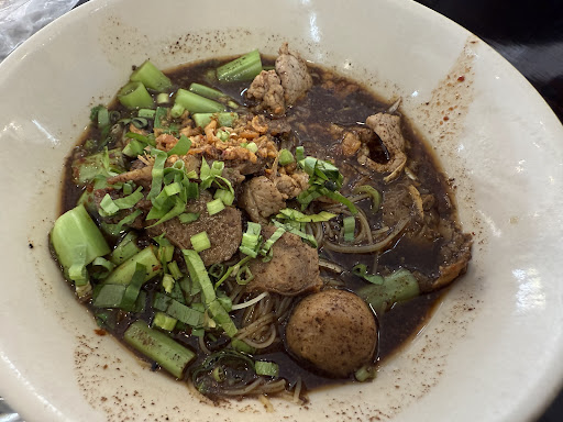 Read moreIt's like a small community in a restaurant where many stores come together. Anyway, we had noodles, and we weren't impressed. The noodles were okay, but my uncle was extremely unsatisfied when we were informed that the thin, white noodles were out at midday. Moreover, the soups were salty, and the meatballs were not made with meat but flour. Therefore, I don't feel it's worth the money—60 baht for each bowl of noodles that aren't delicious at all. The service was okay but very slow. The atmosphere is alright, but the air conditioning is not cool at all. There's a parking space in front of the restaurant. This place has a lot of tables but lacks staff. Both cash and bank transfers are accepted. At first, I wasn't going to write a review, but this place needs improvements urgently, as do the other small bite/snack stores in...