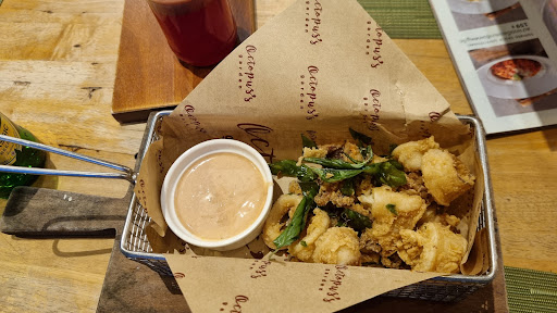 Read moreเรามาถึงเพื่อฉลองวันเกิดภรรยา ปลาโปรดของเธอคือปลาแซลมอน แต่ไม่มีปลาเลย ถ้าผมรู้จักเส้นทางในบุรีรัมย์ เราคงออกไปแล้วหาร้านอาหารอื่นกิน เราสั่งอาหารเรียกน้ำย่อยมาสามอย่าง... ปลาหมึกอร่อยดี ปูห่อชีสรสชาติหลักๆ แต่น้ำจิ้มก็โอเค ปีกไก่สุกเกินไปและแห้ง ผมสั่งเบอร์เกอร์เป็นอาหารจานหลัก ส่วนภรรยาผมเลือกผัดกะเพรากุ้งซึ่งเป็นเมนูโปรดตลอดกาล เบอร์เกอร์มาในโหลแก้ว ทำให้ขนมปังแฉะ เฟรนช์ฟรายส์ไม่ปรุงรส แถมยังแฉะและไม่สุกเท่าที่ผมคิด ภรรยาผมไม่ค่อยประทับใจผัดกะเพราของเธอเท่าไหร่... มันสุกเกินไป คืนก่อนหน้าเราประทับใจที่อื่นมากกว่าในราคาที่ถูกกว่ามาก พนักงานเสิร์ฟใส่ใจดี แต่พ่อครัวต้องหัดทำอาหารใหม่ๆ รสชาติอร่อยๆ ก่อนถึงจะออกมาดูดี เราจะไม่กลับไปอีกแน่นอน! We arrived to celebrate my wife's birthday. Her favourite fish is salmon, and there was none available. Had I known my way around Buriram, we would have left and found a different restaurant. We ordered three starters... the calamari was good, the crab parcels tasted mainly of cheese, but the dip was fine, and the chicken wings were overcooked and dry. I ordered the burger for main, and my wife decided to stick to a perennial favourite pad ker pow kung. The burger was delivered in a glass cloche, which meant the bun was soggy. The French fries were not seasoned and were also soggy and undercooked for my taste. My wife was not impressed with her pad kerpow... it was overcooked. We had a much better experience elsewhere on the previous night for very much less money. The waiting staff were attentive, but the cook needs to learn to cook tasty food fresh to the table before making it look fancy. We won't...