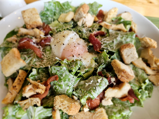 สั่งซีซ่าสลัดมาทาน อาหารเสิร์ฟมาหน้า หน้าตาเหมือนในเมนู สวยงาม จานใหญ่ น่าทานมากๆ น้ำสลัดรสชาติใช้ได้ ผักสดกรอบ ไข่ออนเซ็นได้ที่ ครูตองกรอบ เบคอนแข็ง เหนียวหน่อยแต่รับได้ คลุกน้ำสลัดมาได้ทั่วถึง ยังมีน้ำสลัด พิเศษเสิร์ฟเคียงมาให้อีก เราไม่ได้ใช้ เพราะที่คลุกมาก็ทั่วถึงแล้ว