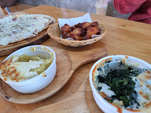 Great little place in Buriram. Easy parking and air-con patio outside. Great garlic bread (portion is huge!) and excellent prices on the beer - only 80 baht for a big Singha or Leo which is really good. I had pesto seafood pasta which was 139 baht and delicious, and a pizza which was not as good (base was too thin and didn't look anything like the pictures when it came!). I stopped in on the way back from the elephant village, it's a really good choice with friendly staff and a good looking...