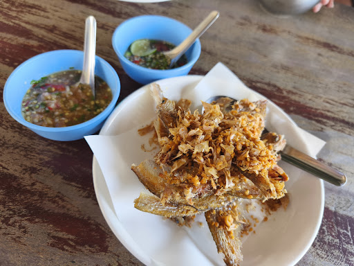 Read moreร้านไม่ใหญ่นัก...แวะชิมหลังจากไหว้หลวงพ่อสุข..วัดปากคลองมะขามเฒ่า...ร้านนี้ชำนาญเรื่องปลา...มีปลาเนื้ออ่อน..ปลาสวาย..ปลาคัง..ฯลฯ..แล้วบอกพ่อครัวเลยว่าจะให้ปรุงเป็นเมนูอะไร...วันนั้นลอง..ฉู่ฉี่ปลาเนื้ออ่อน..ปลาเนื้ออ่อนทอดกระเทียม...แกงป่าเนื้อปลากราย...รสชาติเด็ดขาดมาก...กินไป..ปาดเหงื่อไป...เผ็ด..แต่อร่อย...แกงป่าคลุกข้าว...หยิบปลาเนื้ออ่อนทอดกระเทียมกรอบๆแกล้มตามลงไป...อย่าบอกใครเลย...คุณเอ๋ย..กินข้าวหมดโถไม่รู้ตัวที่เดียว...บรรยากาศร้านริมน้ำ...ราคาสบายกระเป๋า...ผ่านแถวนี้อย่าพลาดที่จะแว...
